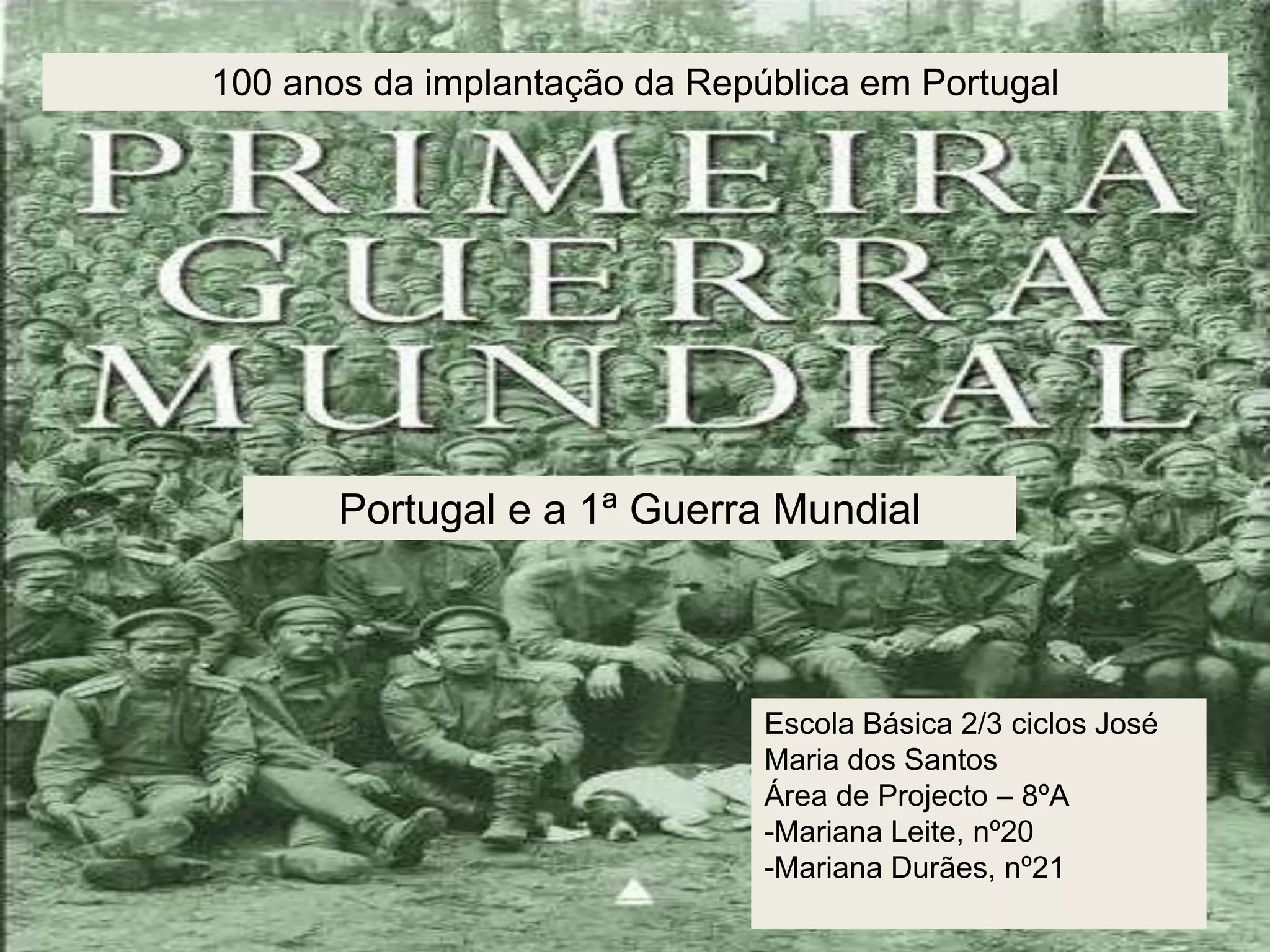 Portugal participou na 1a Guerra Mundial ao lado dos Aliados para defender as colônias e afirmar o prestígio de Portugal, apesar dos esforços da Inglaterra para mantê-lo neutro. As tropas portuguesas sofreram derrotas na África e na Batalha de La Lys de 1918, levando a crescente impopularidade da guerra em Portugal devido aos seus custos.