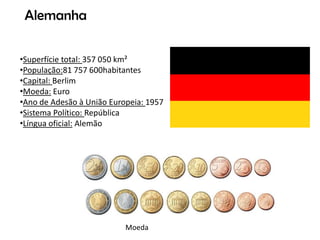Este documento fornece informações sobre Malta, Chipre e Alemanha, incluindo suas capitais, populações, línguas oficiais, moedas e alguns locais populares para visitar em cada país.