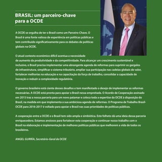 O documento discute a parceria entre o Brasil e a OCDE, destacando: