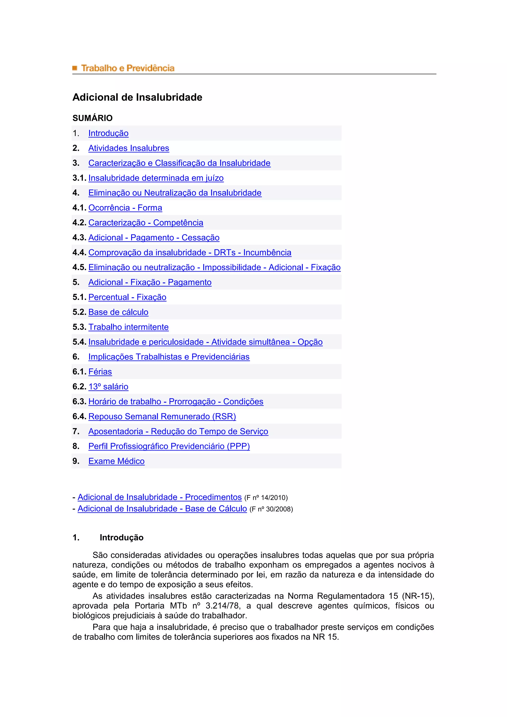 2. Abrange também eliminação ou neutralização da insalubridade, fixação e pagamento do adicional, implicações trabalhistas e previdenciárias e exames médicos relacionados.