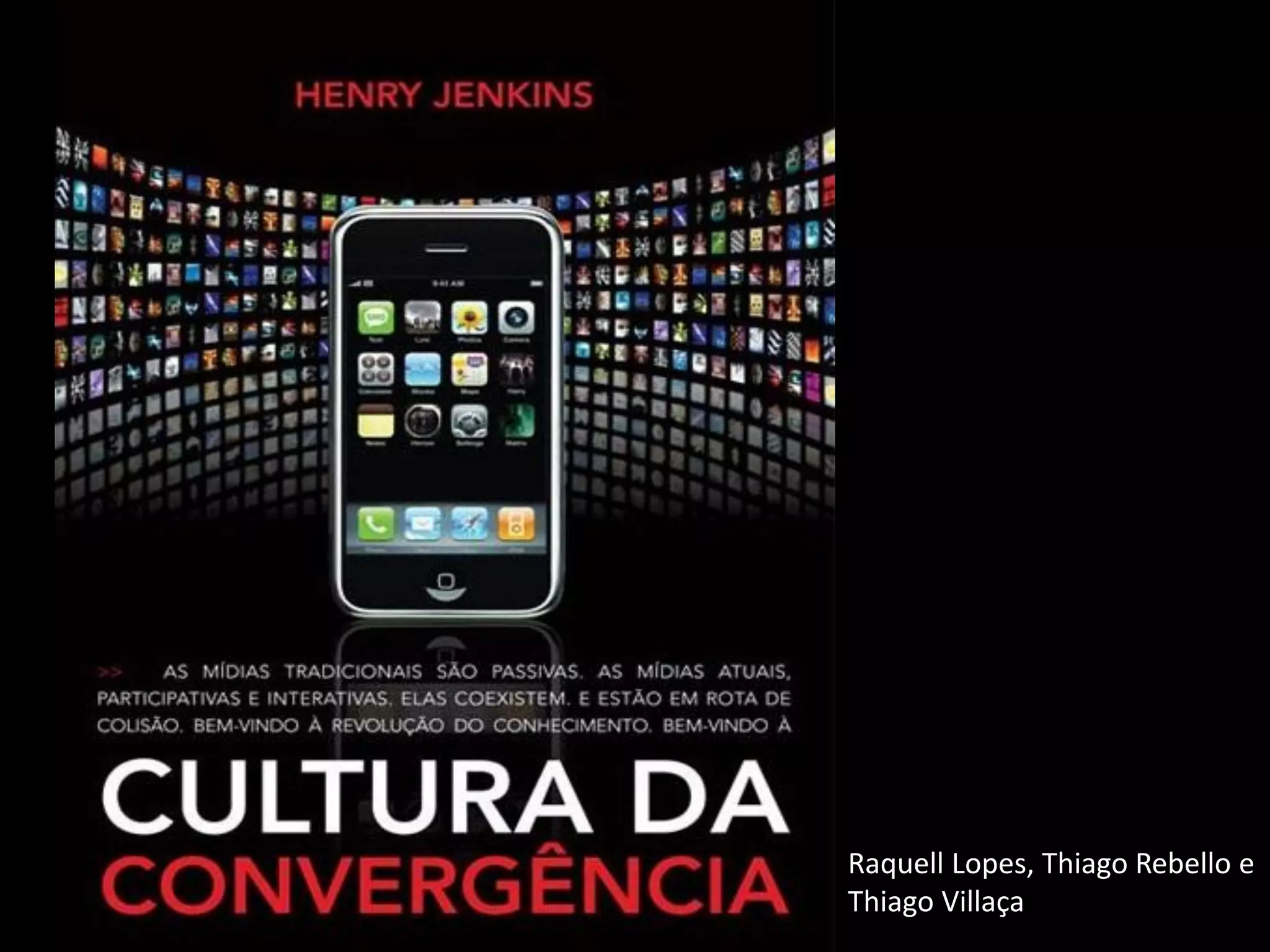 A cultura da convergência refere-se à interação entre mídias antigas e novas, onde o poder do produtor e consumidor se encontram de maneiras imprevisíveis. Três conceitos centrais são: 1) convergência dos meios de comunicação; 2) cultura participativa; 3) inteligência coletiva. As novas tecnologias permitem que o mesmo conteúdo flua por diferentes canais assumindo novas formas.