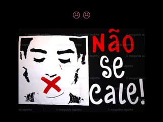 O documento discute violência contra a mulher, definindo os tipos de violência doméstica e familiar previstos na Lei Maria da Penha e enfatizando a importância de denunciar tais crimes. Aponta formas como amigos e familiares podem ajudar vítimas de violência, seja oferecendo apoio psicológico e abrigo ou fazendo a denúncia à polícia de forma anônima.