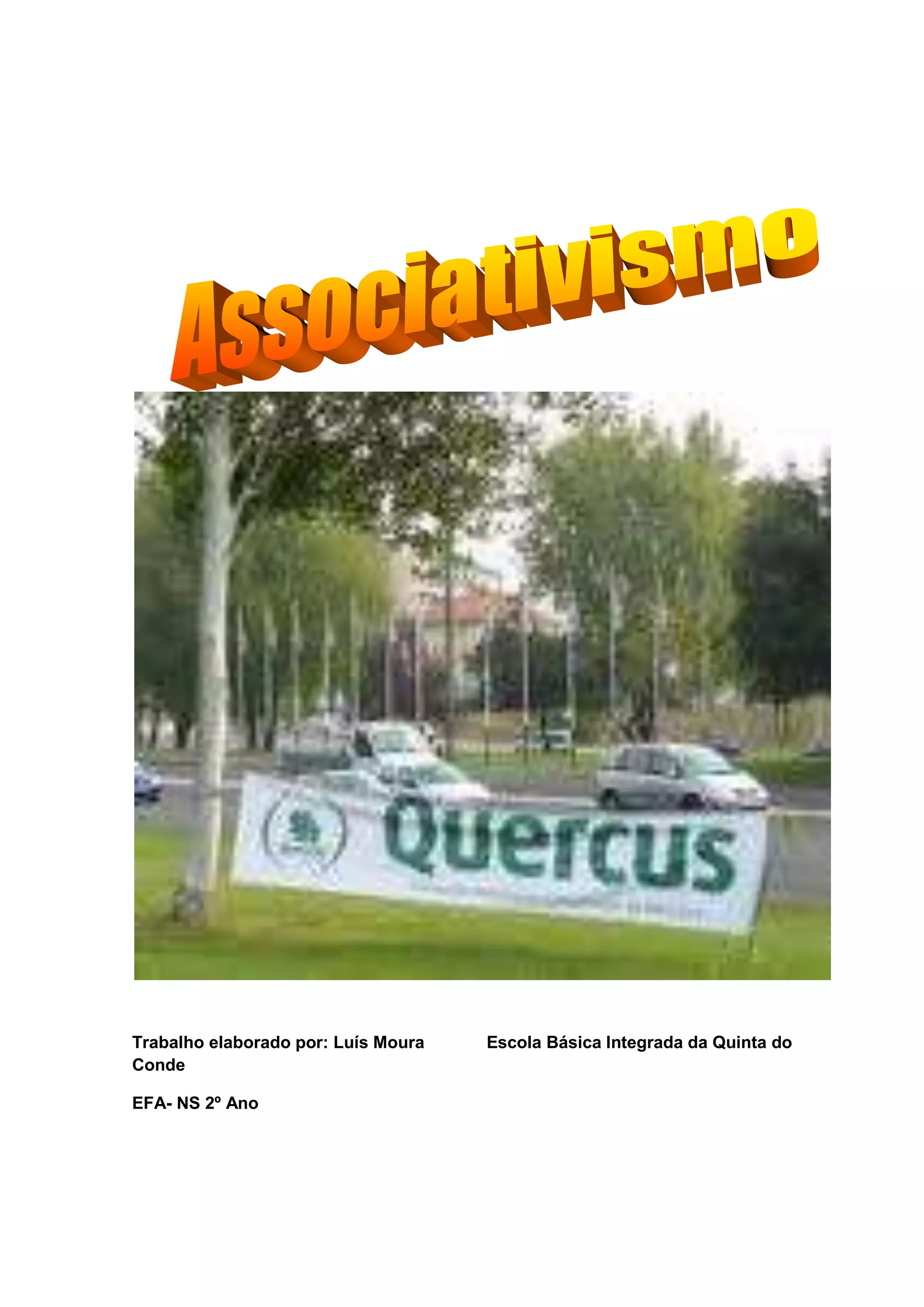Este documento descreve a associação Quercus, incluindo seus objetivos de conservação da natureza, formas de atuação como projetos educacionais e pareceres, e exemplos de suas atividades como campanhas e oficinas.