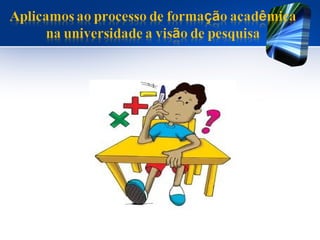 O documento discute a importância da pesquisa como princípio educativo e científico. Defende que sem pesquisa não há ensino de qualidade, e que o mero ensinar e aprender não são suficientes e degradam o processo educativo. Também aponta limitações de um ensino e aprendizagem que não estimulem a pesquisa, a emancipação e a construção do conhecimento.