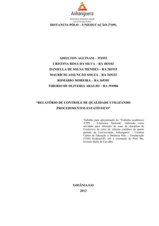 Este relatório apresenta os resultados de uma pesquisa de qualidade de controle realizada em um supermercado. Foram pesados 100 pacotes de três marcas de café e registrados os pesos. Os dados coletados serão analisados estatisticamente para avaliar a consistência dos pesos dos pacotes e identificar possíveis problemas no processo de embalagem.