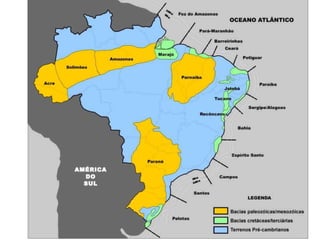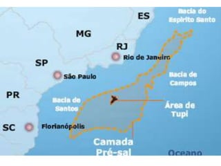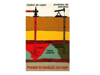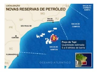 O documento discute a origem, localização e extração do petróleo. O petróleo é formado a partir de restos orgânicos transformados sob altas pressões ao longo de milhares de anos, e é encontrado em cavidades entre camadas do subsolo, principalmente em bacias sedimentares. Sua extração ocorre tanto em terra como no mar, e o Brasil possui uma indústria petrolífera importante liderada pela Petrobras.