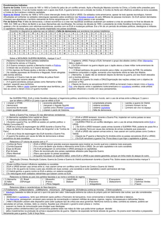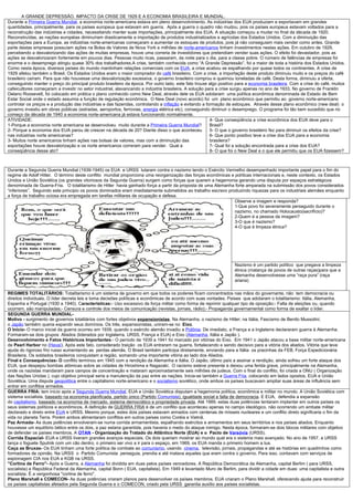 1) Durante a Primeira Guerra Mundial, a economia dos EUA cresceu produzindo e exportando para países europeus em guerra.