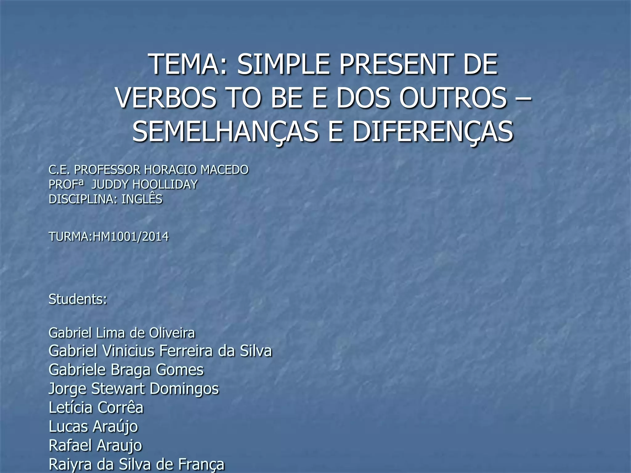 O documento discute as semelhanças e diferenças entre o verbo "to be" e verbos regulares no simple present. Explica como formar frases afirmativas, negativas e interrogativas com esses verbos e fornece exemplos sobre pontos turísticos do Rio de Janeiro.