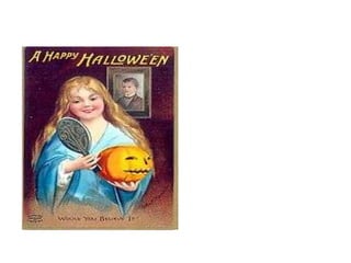 O documento resume a origem e história do Halloween. Originalmente era um festival celta chamado Samhain para honrar os mortos, mas acabou se misturando com tradições cristãs e se tornando uma celebração popular nos países de língua inglesa, especialmente nos Estados Unidos.