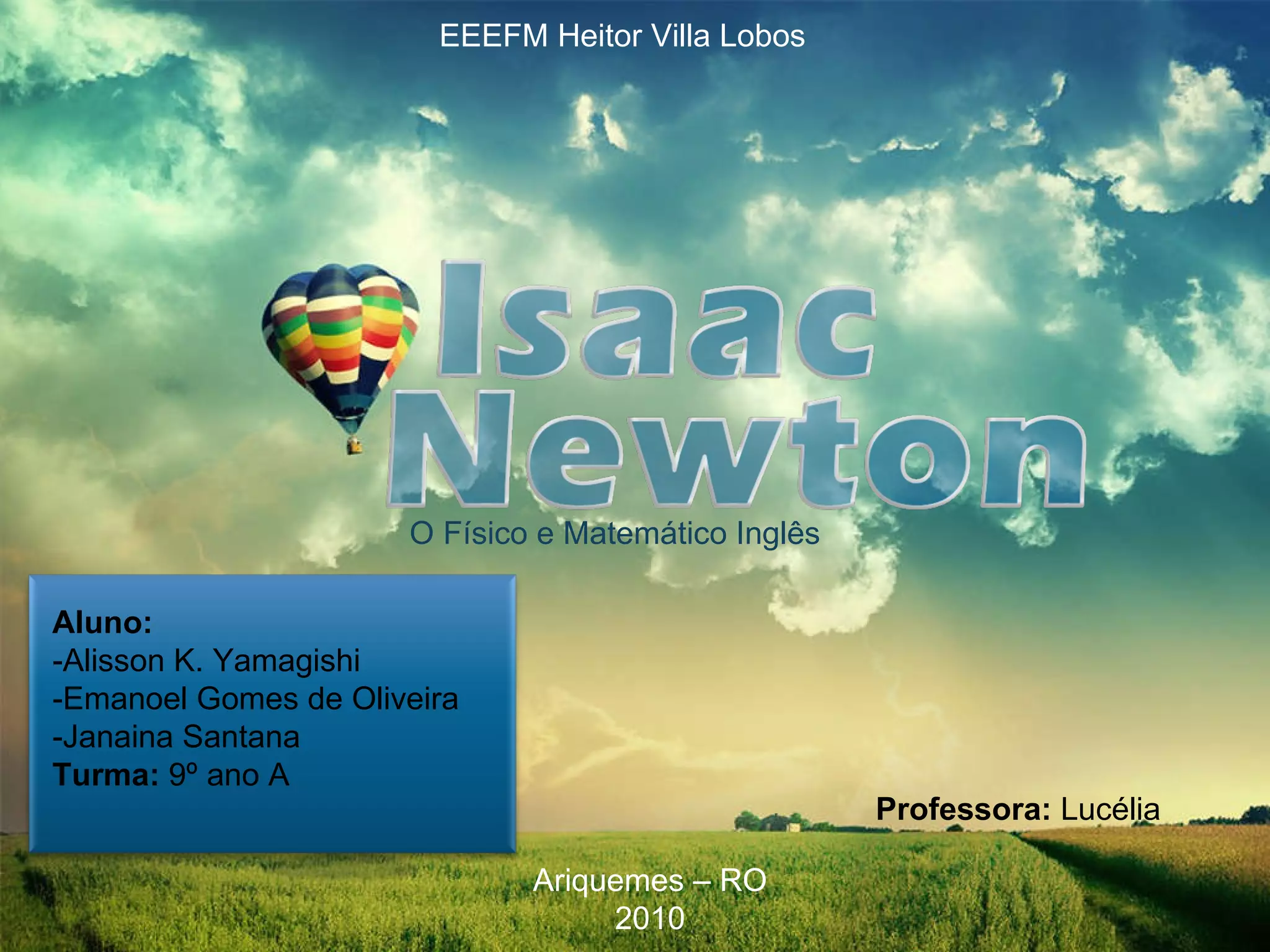 O documento aborda a vida e as contribuições de Isaac Newton à física e matemática, incluindo a formulação das leis do movimento e da gravitação universal. Newton destacou-se como um pioneiro do iluminismo e suas descobertas fundamentais ajudaram a moldar a compreensão moderna da ciência. Seu trabalho sobre a decomposição da luz e suas teorias influenciaram significativamente a física contemporânea.
