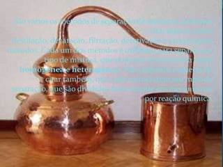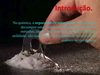 1. A peneiração separa misturas heterogêneas sólido-sólido usando peneiras para reter sólidos maiores.