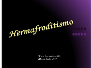 O documento discute o hermafroditismo em humanos e outros organismos. Resume que o hermafroditismo humano pode ocorrer devido a desequilíbrios hormonais na gravidez e requer avaliação médica. O hermafroditismo também existe em animais e plantas, sendo comum em plantas com flor.