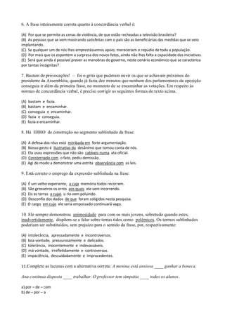 1) O documento é um teste de Língua Portuguesa do 1o bimestre de 2012 para alunos do 1o ano do Ensino Médio da Escola Estadual de Ensino Fundamental e Médio: Aluízio Pinheiro Ferreira.