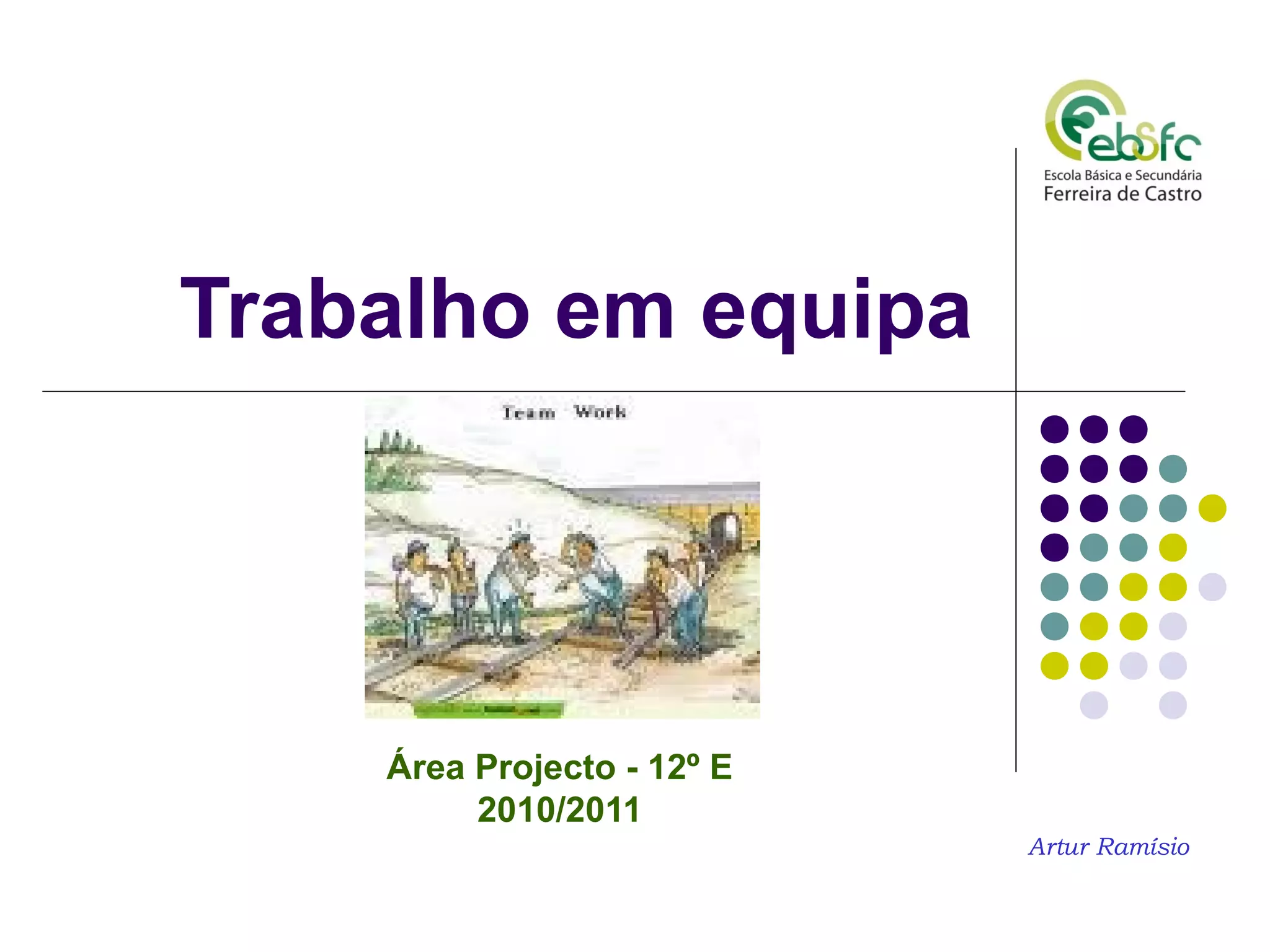 O documento discute a importância do trabalho em equipe e como ele evoluiu de tarefas individuais para uma interdependência de conhecimentos. Apresenta vantagens como aproveitar as capacidades e criatividade individuais e maior motivação, e riscos como perda de tempo, conflitos e confusão de funções.