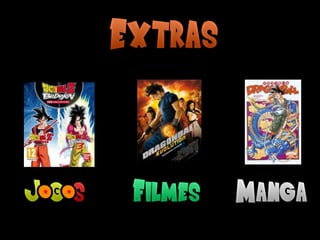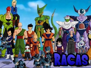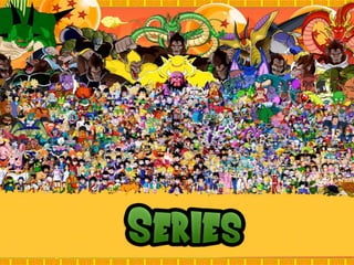 O documento resume a história e os principais elementos da série Dragon Ball, incluindo as séries Dragon Ball, Dragon Ball Z e Dragon Ball GT, assim como os principais personagens como Goku, Vegeta, Piccolo e inimigos como Freeza, Cell e Majin Boo. Também fornece detalhes sobre as raças Saiyajin e os poderes apresentados na série de luta e aventura.