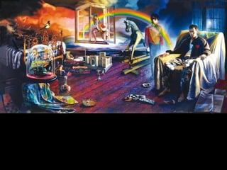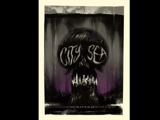 Este documento descreve o processo de criação de um cartaz para o Festival Internacional de Cinema do Porto. Inclui pesquisa de imagens, logótipos e patrocinadores, experimentação de designs, e a seleção de uma imagem obscura modificada em Photoshop. Detalha também a formatação do cartaz final no PowerPoint com texto sobreposto em cor neutra para destacar a imagem.