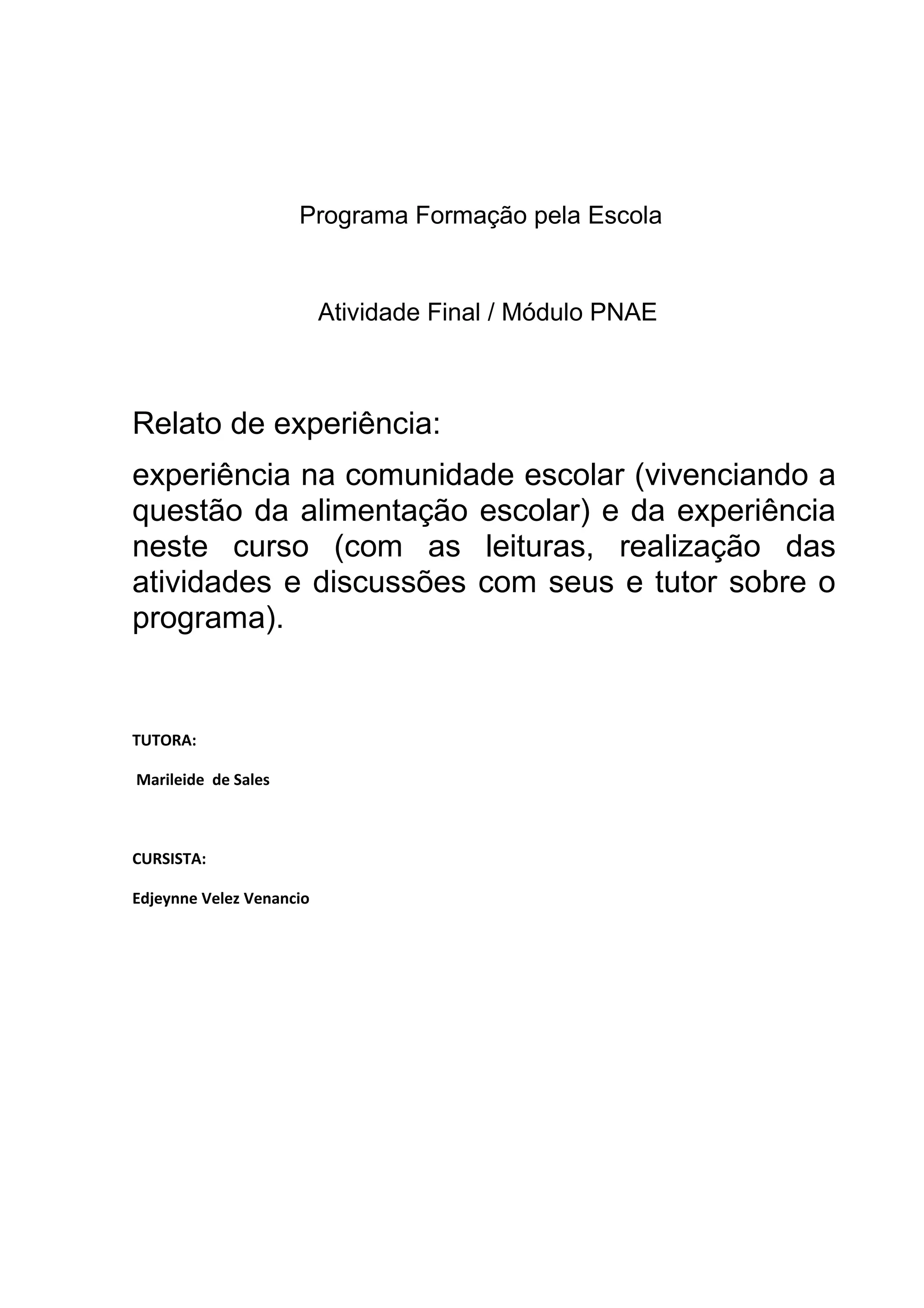 O documento discute o Programa Nacional de Alimentação Escolar (PNAE) e sua importância para garantir alimentação de qualidade aos estudantes. Ele destaca que pelo menos 30% dos recursos do PNAE devem ser utilizados para comprar alimentos diretamente de agricultores familiares, seguindo critérios como licitação pública e divulgação das compras. Também ressalta a necessidade de tornar as informações sobre a merenda escolar mais acessíveis ao público para permitir maior controle social.