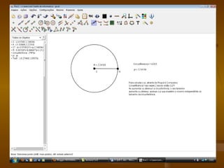 O documento resume a história do número pi, como foi descoberto pelos egípcios e sua importância nas equações científicas. Explica que pi é uma constante irracional que representa a razão entre a circunferência e o diâmetro de um círculo. Também fornece instruções passo a passo para calcular o valor aproximado de pi usando o programa Régua e Compasso.