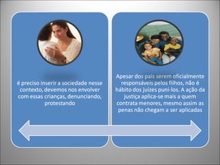 O documento discute as causas e consequências do trabalho infantil no Brasil. Mais de 5 milhões de crianças trabalham ilegalmente devido à pobreza e falta de oportunidades. É necessária uma abordagem integrada do governo e da sociedade civil, incluindo fiscalização rigorosa e apoio às famílias, para eliminar esta prática e assegurar uma vida digna para as crianças.
