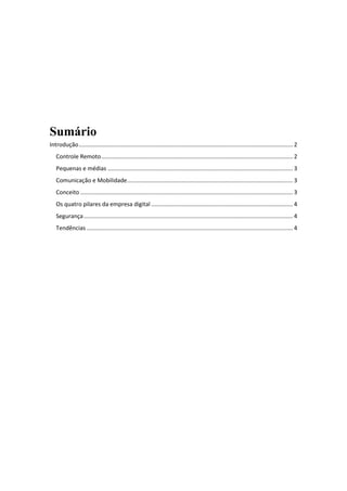 1) O documento discute como as empresas precisam se adaptar à era digital, integrando tecnologia aos negócios.