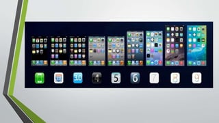 O documento descreve a evolução do sistema operacional iOS da Apple desde sua criação em 2007 para o iPhone até a versão 11 lançada em 2017. O iOS passou por diversas atualizações que adicionaram novas funcionalidades como suporte a apps, multitarefa, reconhecimento facial e de impressão digital entre outras. O documento também resume as principais versões do sistema Android desde sua criação até a versão 8 (Oreo) de 2017.