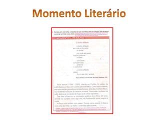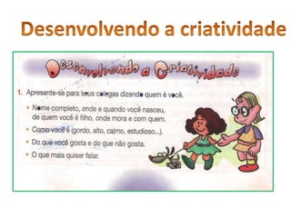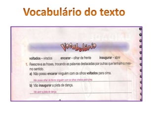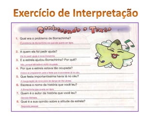 O documento resume um debate sobre um livro didático de língua portuguesa para o 3o ano do ensino fundamental. O livro possui 247 páginas divididas em 19 capítulos e apresenta ilustrações literárias e diversos gêneros textuais. O documento também resume o conto "A Borrachinha que Queria Ser Lápis", que fala sobre uma borracha que queria ser lápis e pede ajuda a uma estrela.