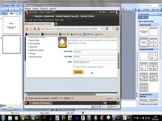 O documento descreve o que é o Nessus, uma ferramenta de auditoria de segurança usada para detectar vulnerabilidades em redes. Ele explica como instalar e registrar o Nessus, incluindo como criar um usuário para acessá-lo através de um navegador da web. O Nessus realiza varreduras de portas para detectar servidores ativos e simular invasões a fim de encontrar falhas de segurança.