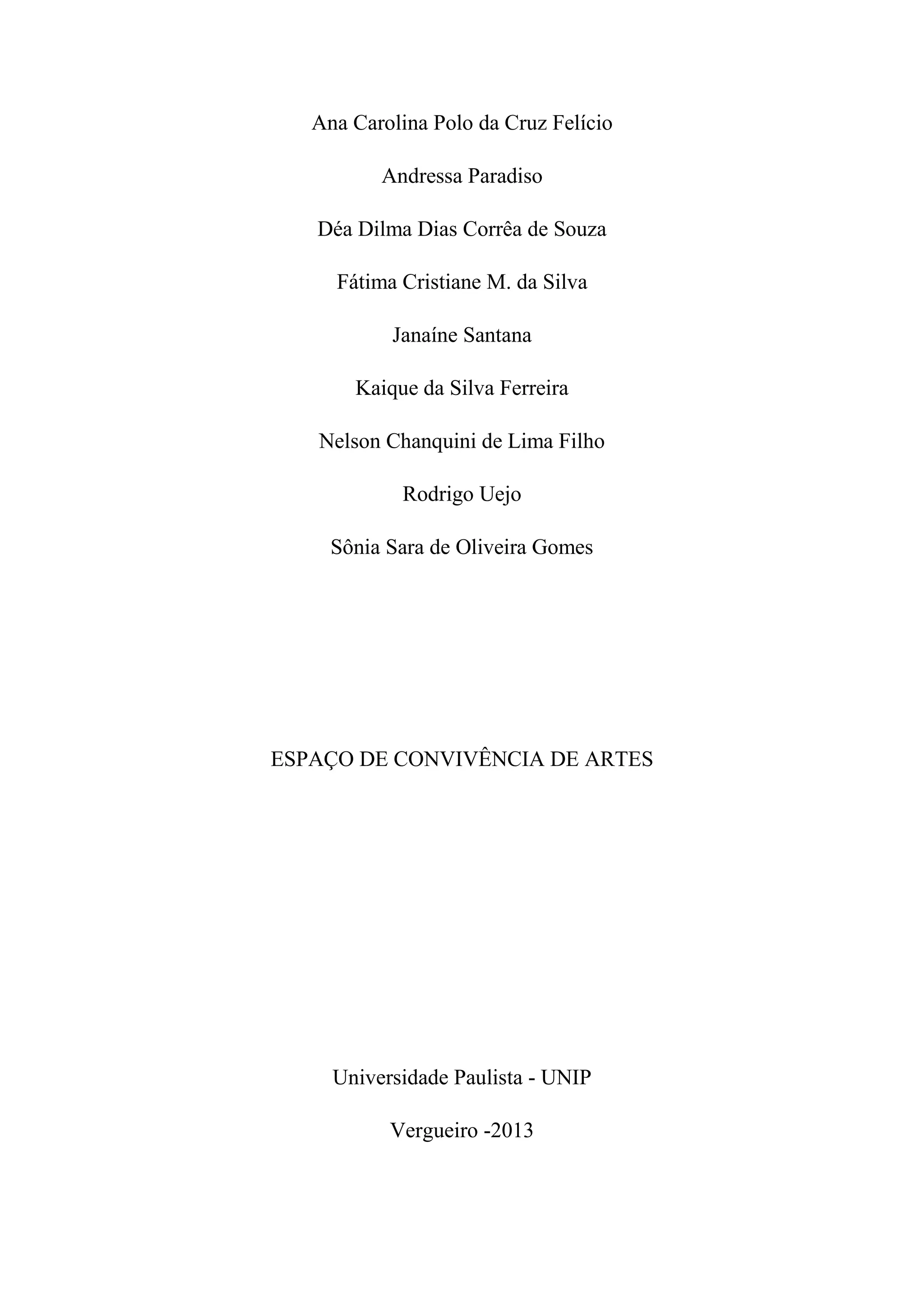 Este documento descreve um projeto para criar um "Espaço de Convivência de Artes" em uma escola pública inspirado em uma área de exposições visitada no Centro Cultural de São Paulo. O projeto visa promover a expressão artística e criativa dos estudantes através de atividades como pintura, escultura, música, dança e teatro. Os alunos seriam incentivados a participar de oficinas e apresentações no espaço, que também receberia obras da comunidade. O objetivo é tornar a escola um ambiente mais dem