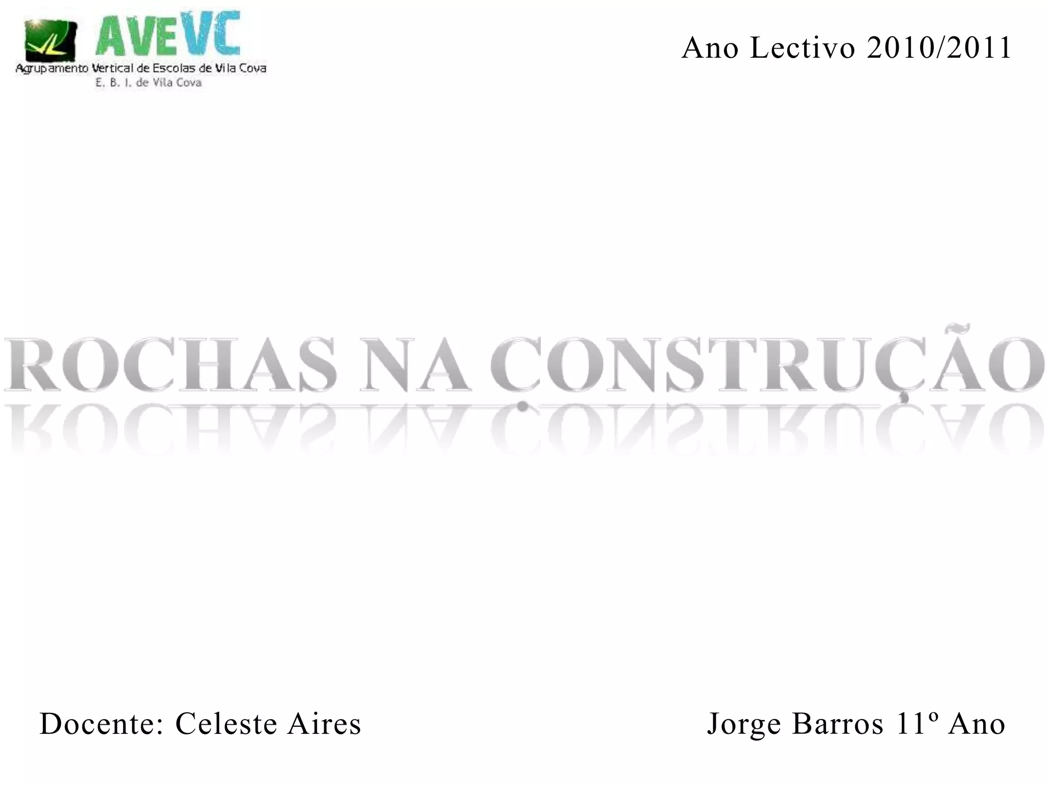 O documento discute diferentes tipos de rochas, incluindo suas propriedades e usos. É descrito como rochas podem ser classificadas em rochas ígneas, sedimentares e metamórficas. Algumas rochas, como granitos e mármores, são usadas como rochas ornamentais em construções.
