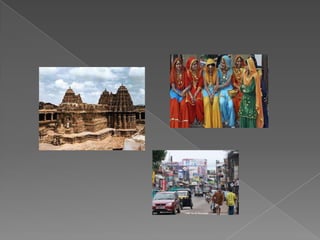A Índia é uma república federal com mais de 1 bilhão de habitantes, localizada no sul da Ásia. Sua economia é baseada na agricultura, indústria e tecnologia e possui forte concentração de renda. A cultura indiana é marcada pelo hinduísmo, sistema de castas e rios sagrados como o Ganges.