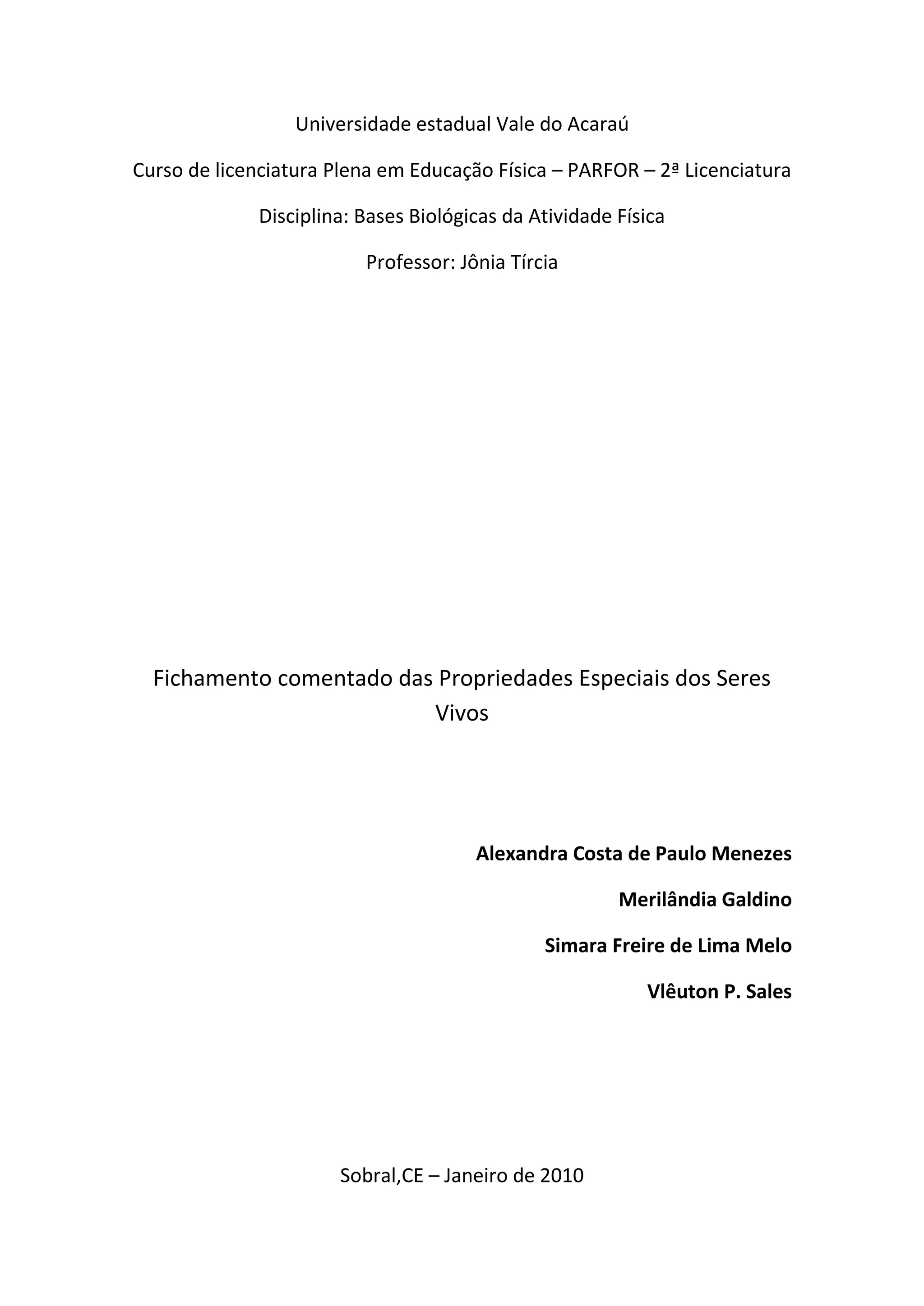 O documento resume as propriedades especiais dos seres vivos, incluindo sua composição química baseada em átomos, organização celular, nutrição, crescimento, reprodução e evolução. Discutem-se as características dos seres vivos como estarem vivos, se reproduzirem e evoluírem ao longo do tempo.