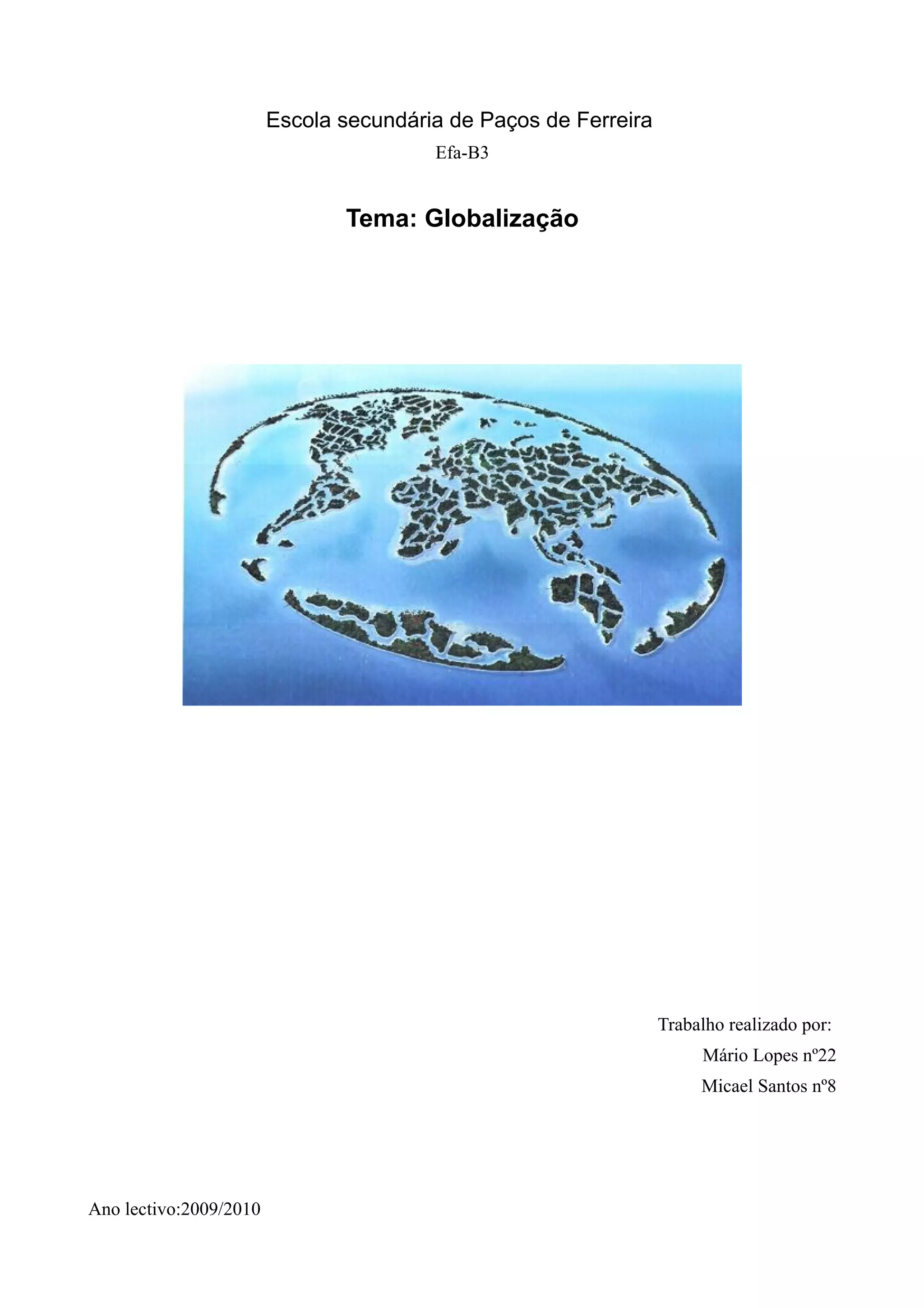 Este documento discute como a União Europeia promove a globalização através de suas políticas ambientais, educacionais e comerciais. A UE estabeleceu regulamentações ambientais rigorosas e um sistema de comércio de emissões para lidar com as mudanças climáticas. Programas educacionais como Juventude em Ação promovem a mobilidade de estudantes. As políticas comerciais da UE buscam liberalizar o comércio global e apoiar países em desenvolvimento.