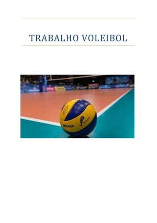 O documento discute a origem e as regras básicas do voleibol. Apresenta a origem do esporte nos Estados Unidos no século 19 e sua introdução em Portugal durante a Primeira Guerra Mundial. Detalha os fundamentos técnicos como passe, machete e remate, além do sistema de pontuação e divisão do campo de jogo.