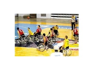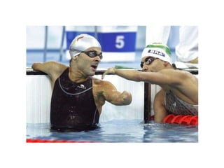 O documento discute as dificuldades enfrentadas por portadores de necessidades especiais no Brasil, a importância da atividade física para este grupo e alguns esportes adaptados.