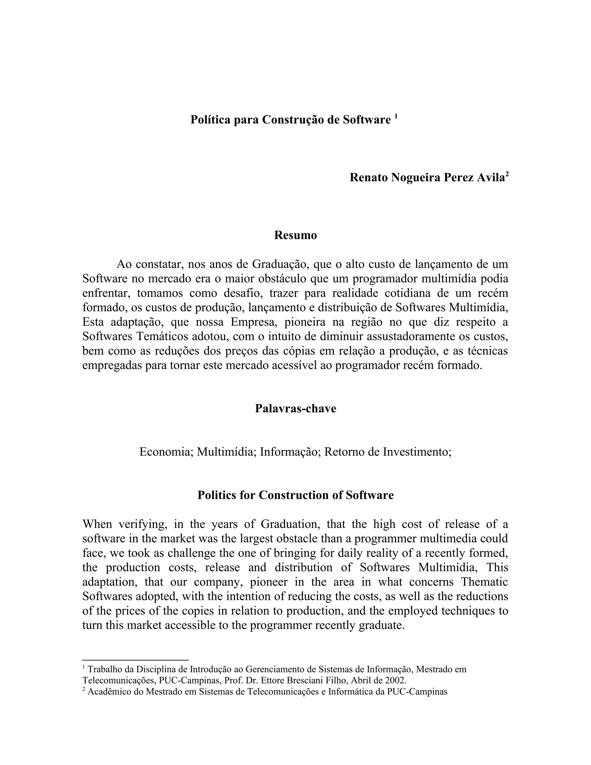 1. O documento discute políticas para a construção de software de baixo custo, focando em programas multimídia. 2. Ele propõe uma abordagem que envolve reduzir custos de produção através de contenção de despesas e terceirização de serviços. 3. Detalha etapas como pesquisa de mercado, definição do público-alvo, planejamento de equipamentos e recursos humanos necessários.