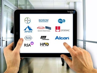 O documento descreve os serviços e soluções digitais oferecidos pela empresa Track Digital, incluindo desenvolvimento de sites, aplicativos, campanhas de marketing digital e ferramentas de engajamento para clientes como empresas farmacêuticas. A Track Digital possui escritórios em Campinas e São Paulo e oferece serviços especializados em tecnologia e marketing digital.
