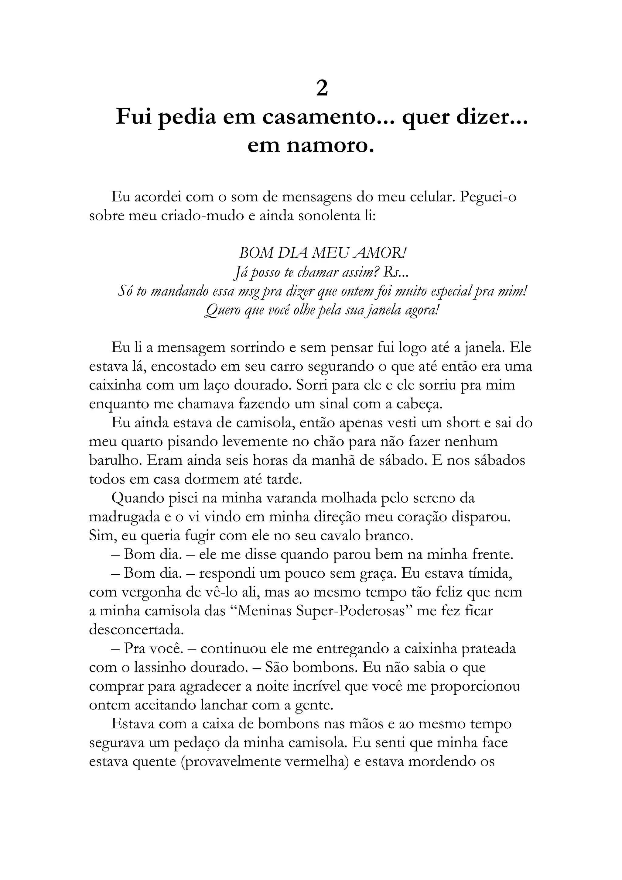 Dimy surpreende a protagonista com um convite para passearem juntos na praça da cidade após acordá-la com uma mensagem carinhosa. Eles conversam e se beijam no parque, demonstrando o início de um romance. No entanto, uma ligação da amiga Laura interrompe o momento, deixando a protagonista sem jeito para explicar onde realmente está.