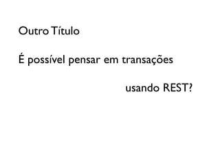 O documento discute transações compensatórias em arquiteturas REST, proposta por Roy Fielding, e analisa a viabilidade de implementar transações distribuídas sob suas restrições. Com exemplos práticos relacionados a reservas de passagens aéreas, propõe um modelo baseado no conceito de 'try-cancel/confirm' que assegura atomicidade em aplicações. Além disso, descreve o processo de confirmação e cancelamento de reservas, destacando a importância de evitar dupla reserva e garantir a integridade das transações.