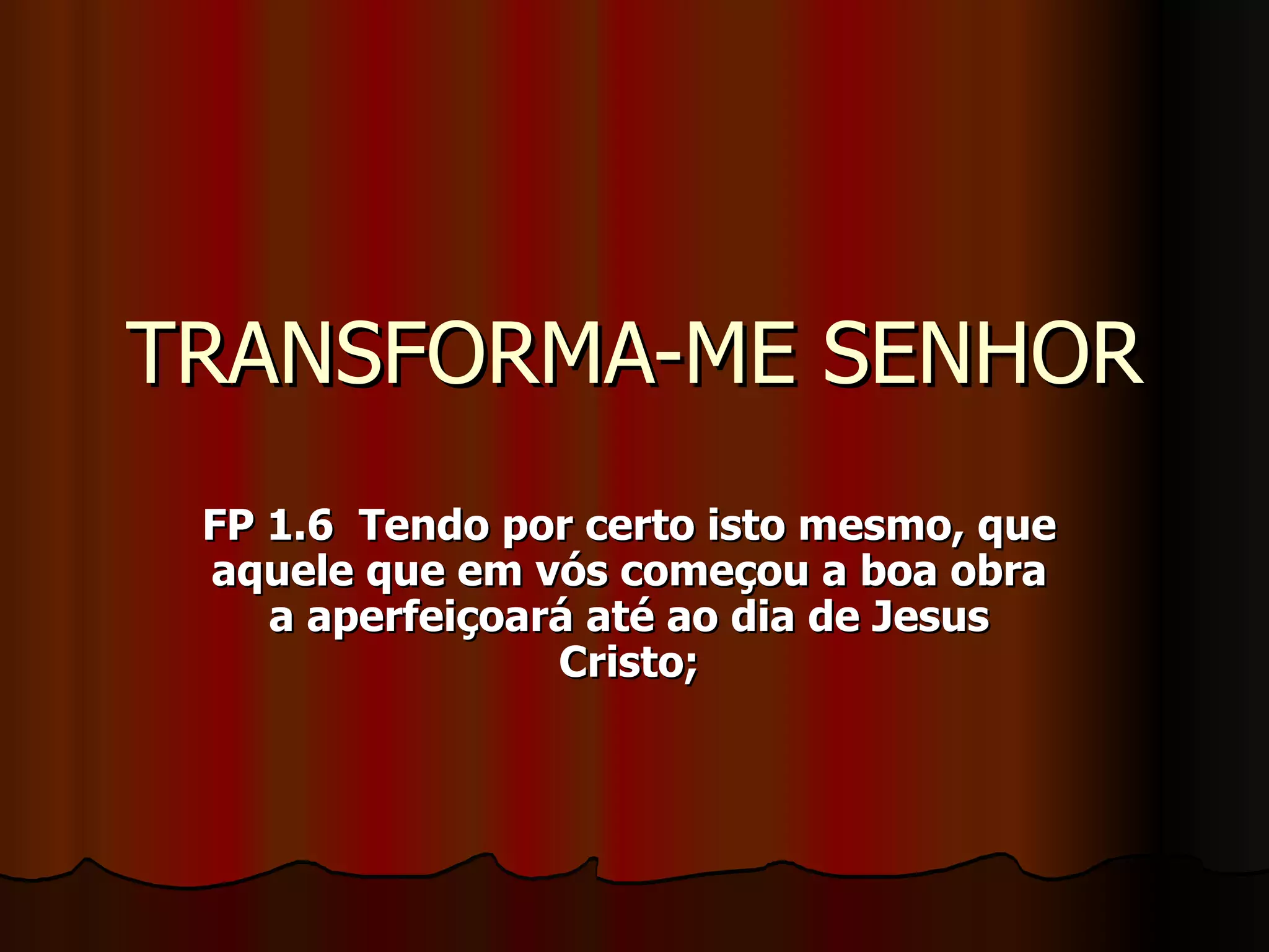 O documento discute a transformação cristã e os perigos do fariseísmo. A transformação verdadeira vem do Espírito Santo, não de esforços humanos, e é um processo contínuo, não instantâneo. A perfeição cristã significa amadurecimento, não perfeição exterior.