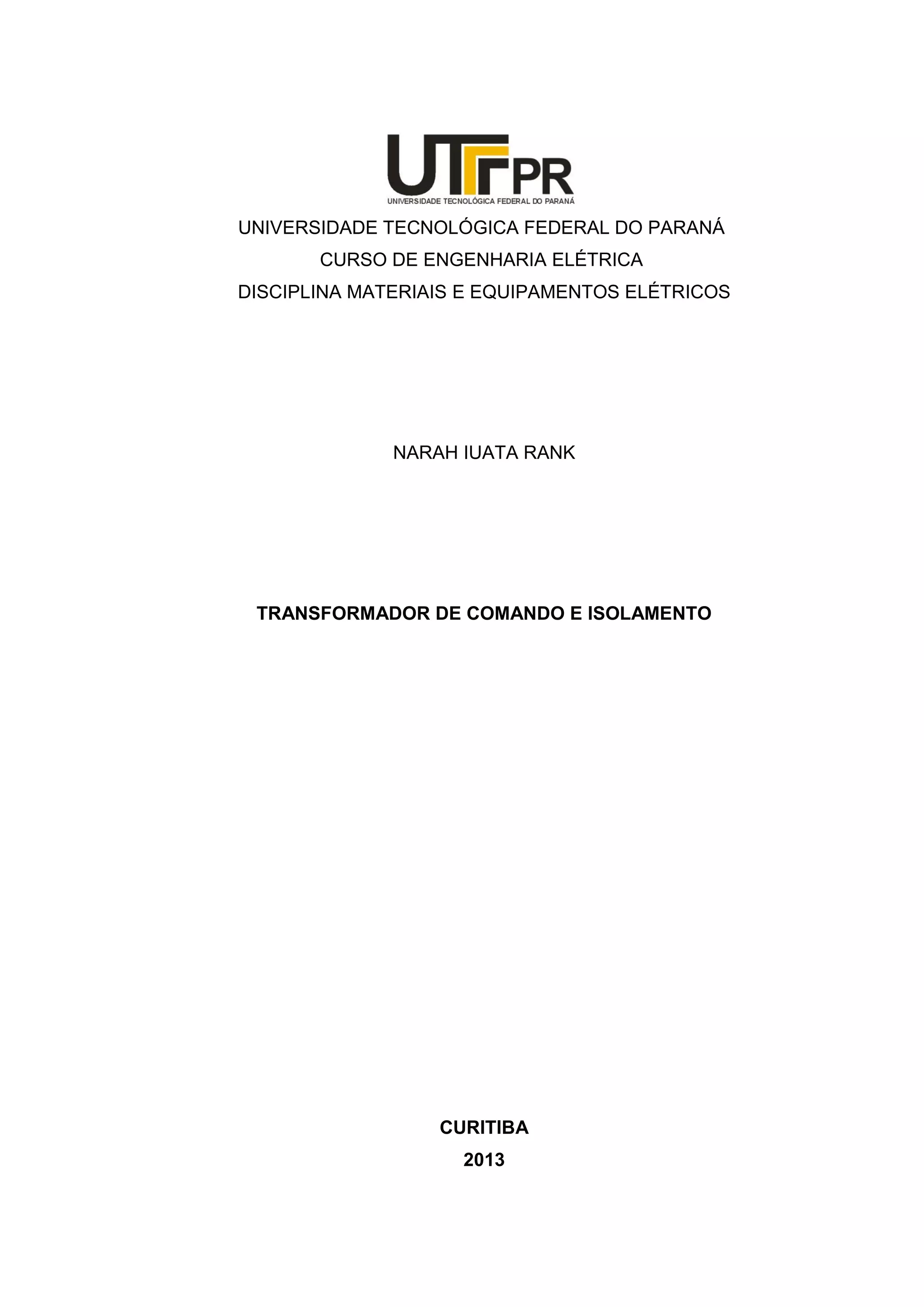Este documento descreve os tipos de transformadores de comando e isolamento, incluindo suas funções, classificações e constituições. O texto define transformadores de comando como aqueles que fornecem tensões variadas para circuitos auxiliares de comando e isolamento, enquanto transformadores de isolamento mantêm a mesma tensão de entrada e saída para separar circuitos galvanicamente. A classificação leva em conta o número de fases, meio isolante e material do núcleo. Ambos os tipos são constituídos principalmente por enrolamentos e núcle