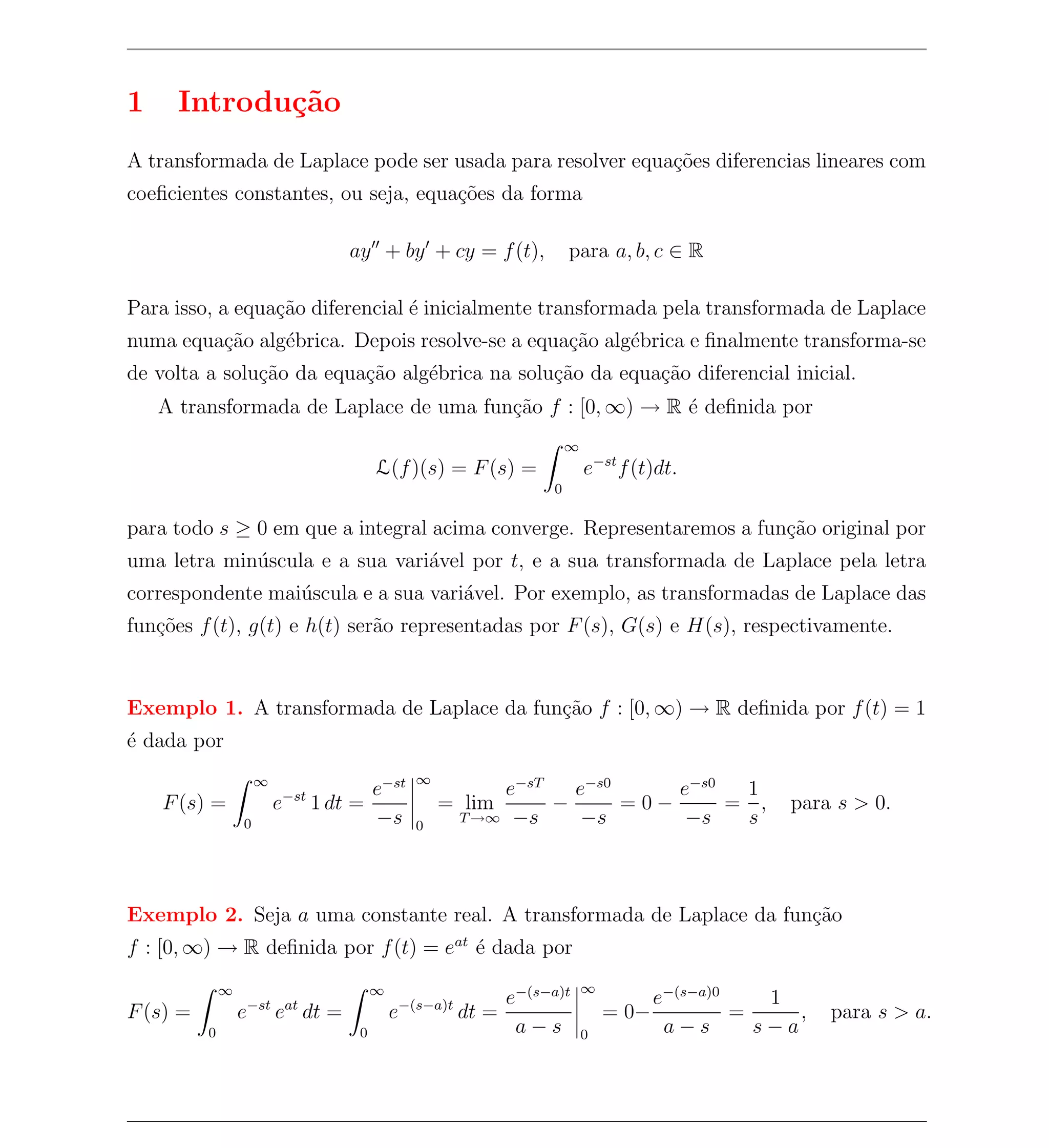 1. A transformada de Laplace é usada para resolver equações diferenciais lineares com coeficientes constantes, transformando a equação diferencial inicial em uma equação algébrica.