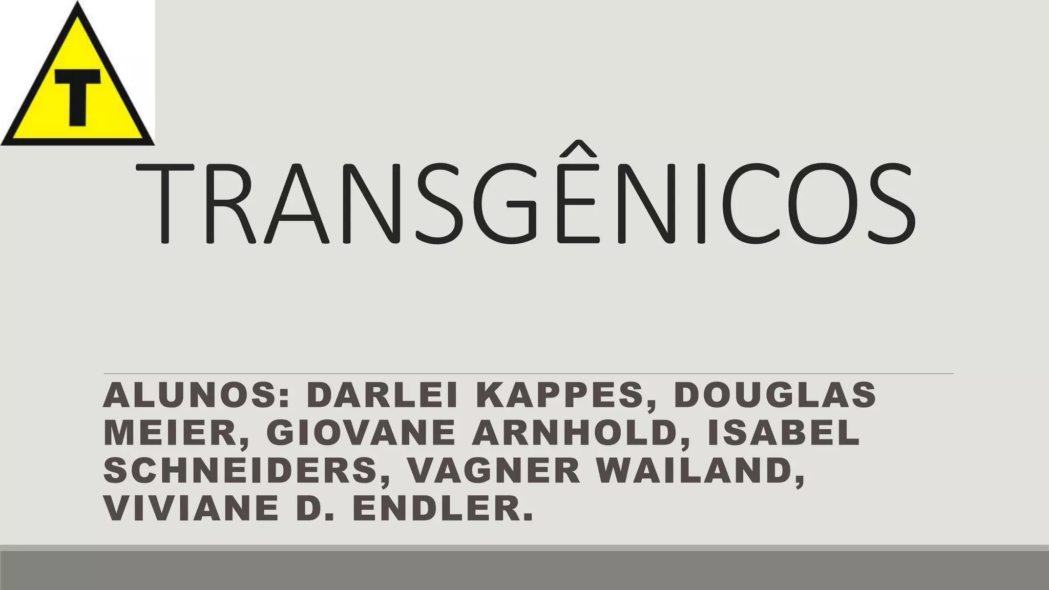 O documento discute transgênicos, definindo-os como alimentos geneticamente modificados para melhorar qualidade e produção. Detalha como são feitos através da inserção de DNA de outros organismos, e discute aplicações, como resistência a pragas e maior valor nutricional. Também aborda controvérsias sobre segurança, meio ambiente e impactos socioeconômicos.