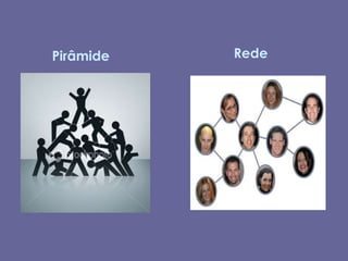 O documento discute a ascensão das redes como modelo organizativo na sociedade moderna. A revolução das tecnologias de comunicação e transporte, juntamente com a globalização, levaram a mudanças profundas que enfatizam a conectividade e colaboração. Isso transformou como as organizações operam, com estruturas menos hierárquicas e mais focadas em compartilhamento e aprendizagem coletiva.