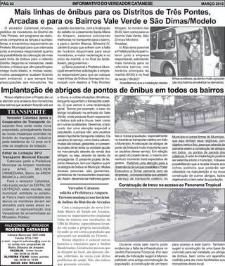 1) O vereador Catanese solicita melhorias no transporte público municipal, como mais linhas de ônibus para bairros e distritos e a construção de abrigos nas paradas.