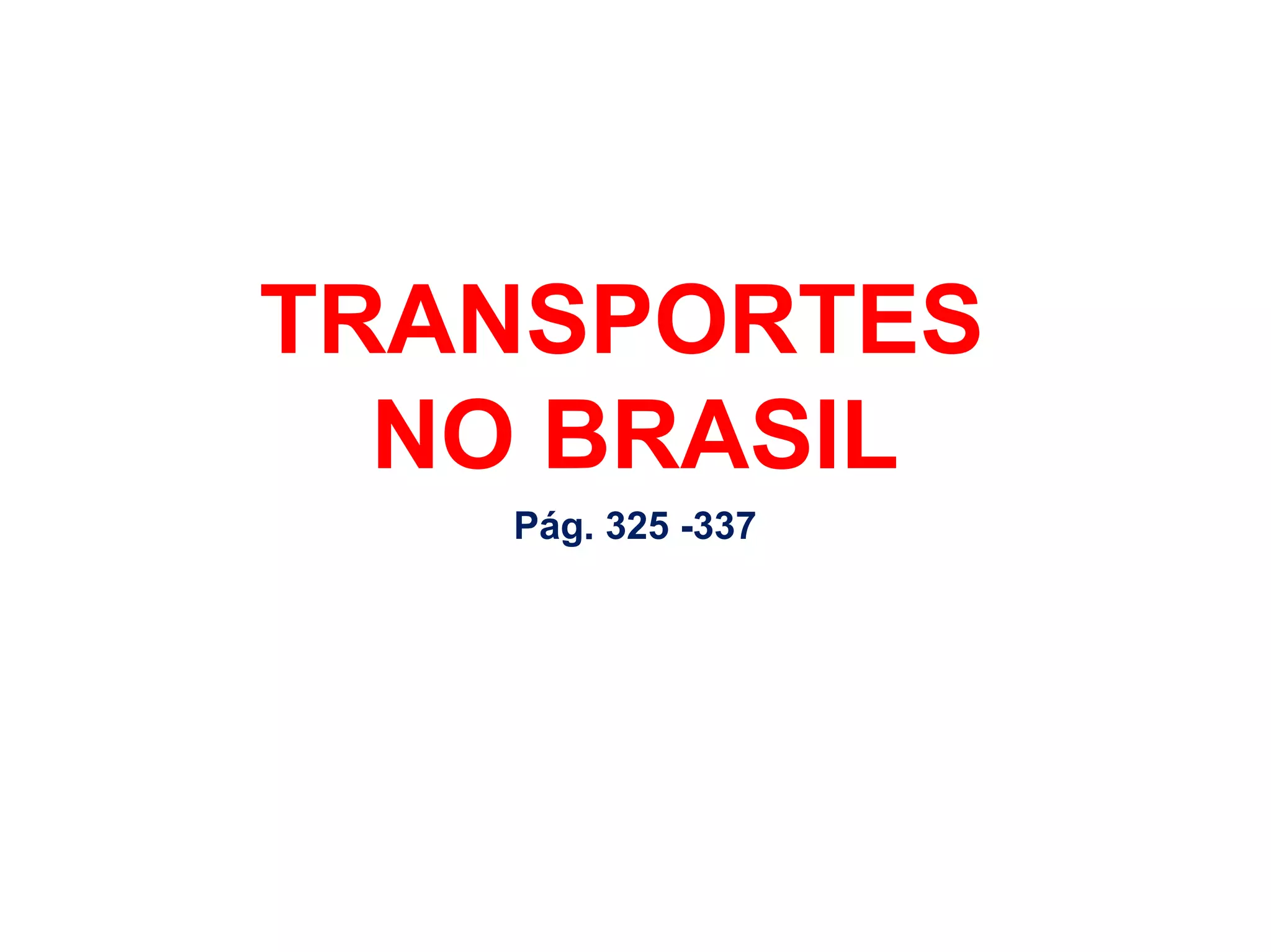 O documento discute os principais modos de transporte no Brasil, incluindo transporte ferroviário, rodoviário, aquaviário, aéreo e tubular. Destaca o declínio das ferrovias após a crise do café e sua atual situação com privatizações. Também aborda os problemas das rodovias como má condição e pedágios altos, além dos impactos ambientais do transporte.