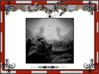O documento descreve o episódio bíblico da Transfiguração de Jesus no Monte Tabor, onde seus discípulos testemunharam sua forma espiritual elevada ao lado de Moisés e Elias. Explica que os três representam a mesma individualidade espiritual que se reencarnou três vezes para anunciar a vinda do Cristo. Afirma que a Nova Revelação esclareceu que a transfiguração permitiu aos discípulos vislumbrarem a verdadeira natureza elevada de Jesus.