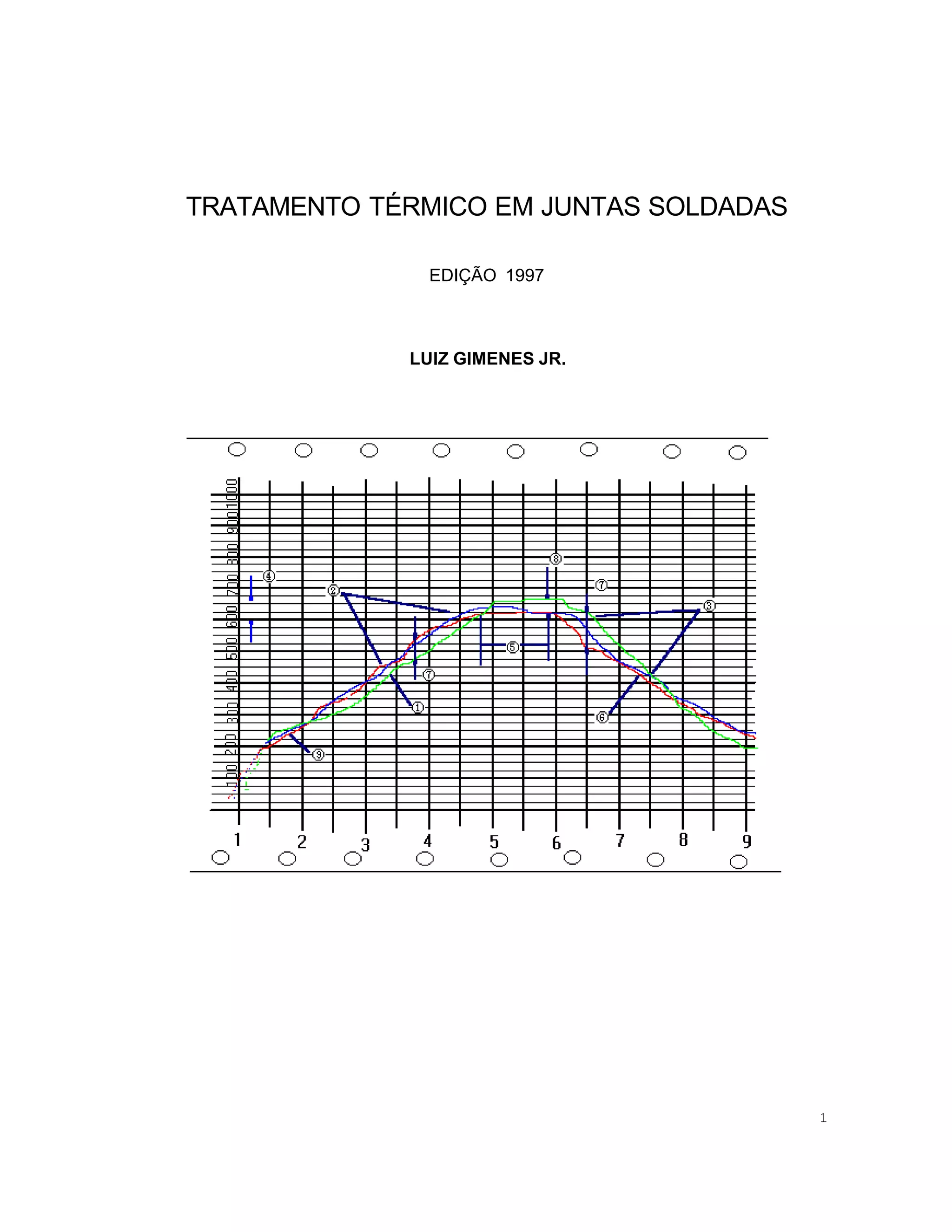 O documento discute tratamentos térmicos aplicados em juntas soldadas, incluindo alívio de tensões, recozimento, normalização, têmpera e revenimento. Descreve os objetivos e procedimentos de cada tratamento, além de abordar tensões residuais, hidrogênio e equipamentos utilizados.
