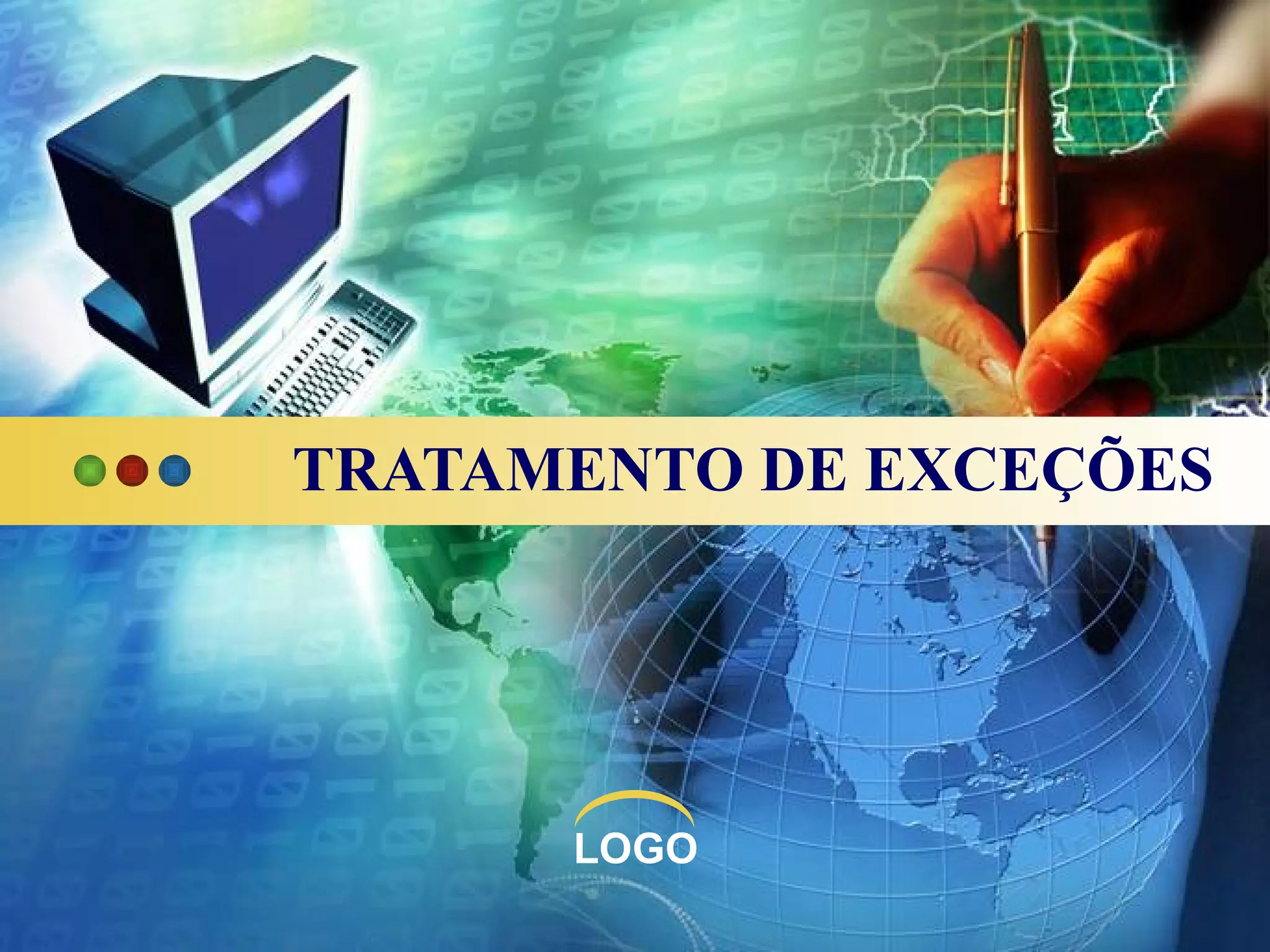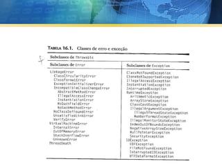 O documento discute tratamento de exceções em Java. Ele explica que o tratamento de exceções permite detectar e lidar com erros durante a execução de um programa. Apresenta exemplos de código que usam blocos try-catch e try-finally para tratar erros como divisão por zero. Discute também as classes que identificam diferentes tipos de erros.