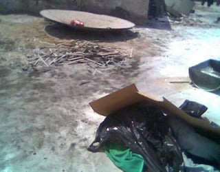 Furo de conexão da garrafade pressão. Parte do dedo da vítima.