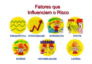 O documento discute os efeitos do ruído na saúde, como identificar riscos de exposição ao ruído e os tipos e uso correto de protetores auditivos. Ele explica como o ouvido funciona e os danos que podem ocorrer com a exposição prolongada ao ruído, como zumbido e perda auditiva. Também fornece dicas sobre como escolher um bom protetor auditivo e usá-lo corretamente para proteger a audição no trabalho.